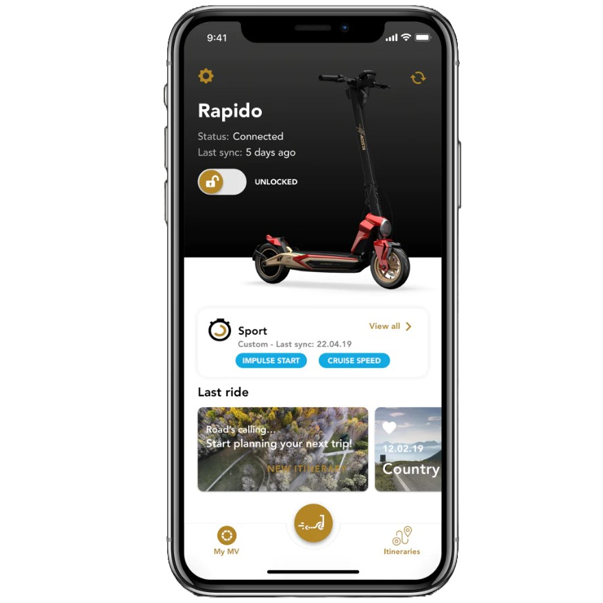 Scegli la tua velocità tra 4 diversi livelli, mappa il tuo itinerario di viaggio, controlla le prestazioni della batteria e sblocca il tuo scooter dall'app.